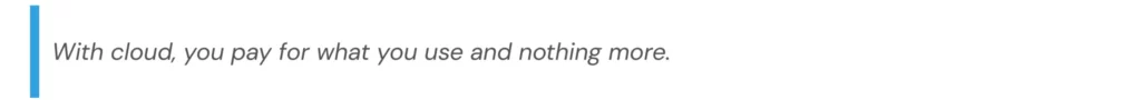 The cloud takes the hassle out of infrastructure planning. Instead of predicting future hardware needs, you scale up or down as required, often with just a few clicks. Whether it is storage, processing power or number of users, you can respond to growth in real time.