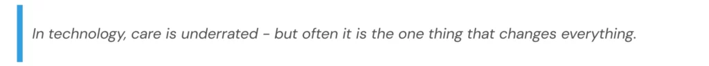 We have helped clients rescue cloud projects that were over-engineered, overpriced, and underutilised. What turned things around was not more tech – it was listening, simplifying, and genuinely caring about their needs.
